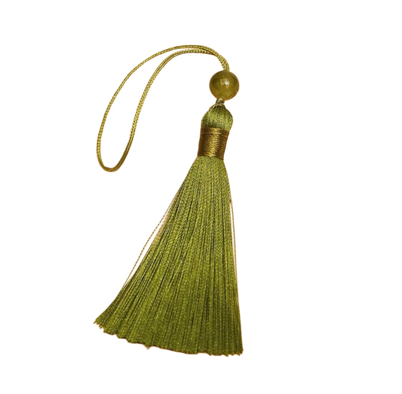 Декоративная кисточка , с бусиной , 8см (размер до подвеса), цвет зеленый