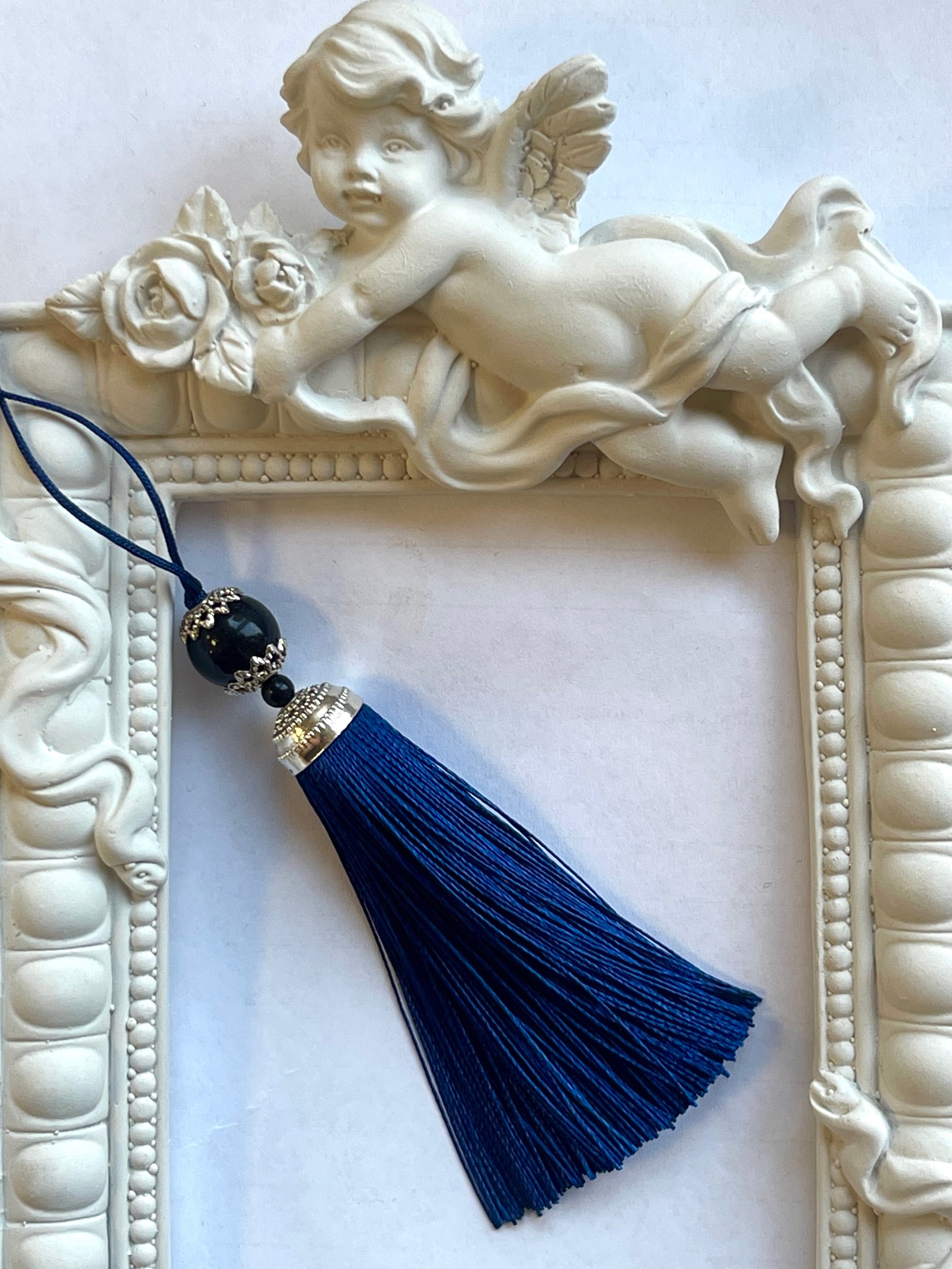 декоративная кисточка, цвет синий , с бусинкой 10,5см