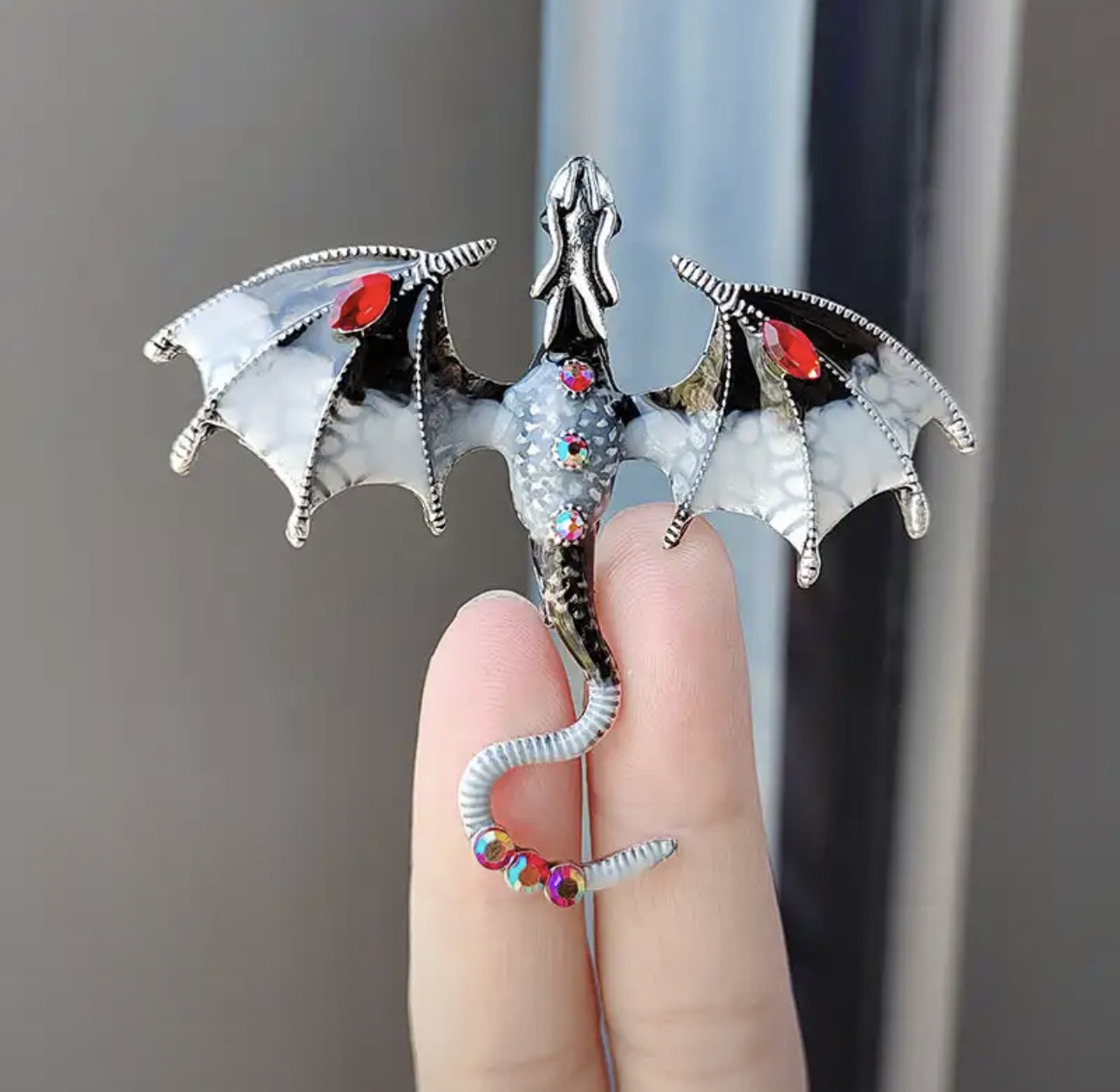 Эмалированная брошь в виде дракона (7*6см) цвет серый