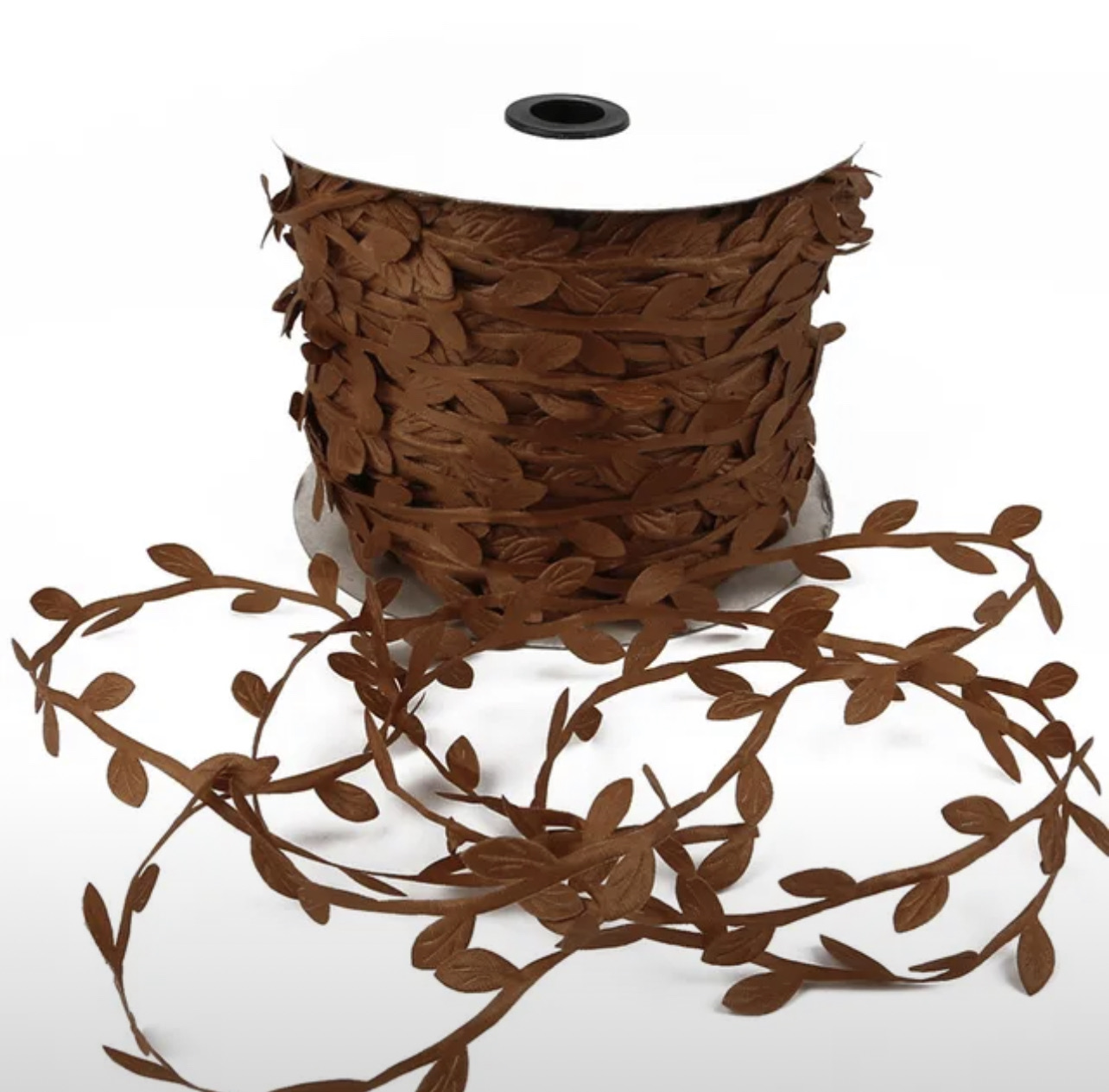 Искусственные шелковые ленты-листья, 3см , цвет коричневый 5метров