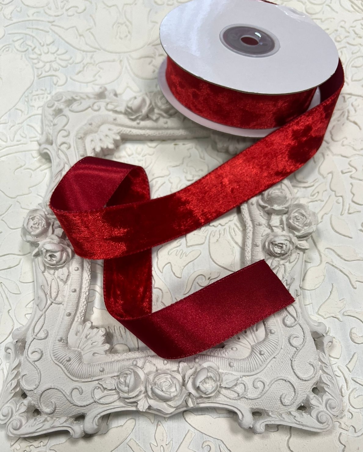 Лента двусторонняя велюр/атлас 2,5см цвет красный (1м)