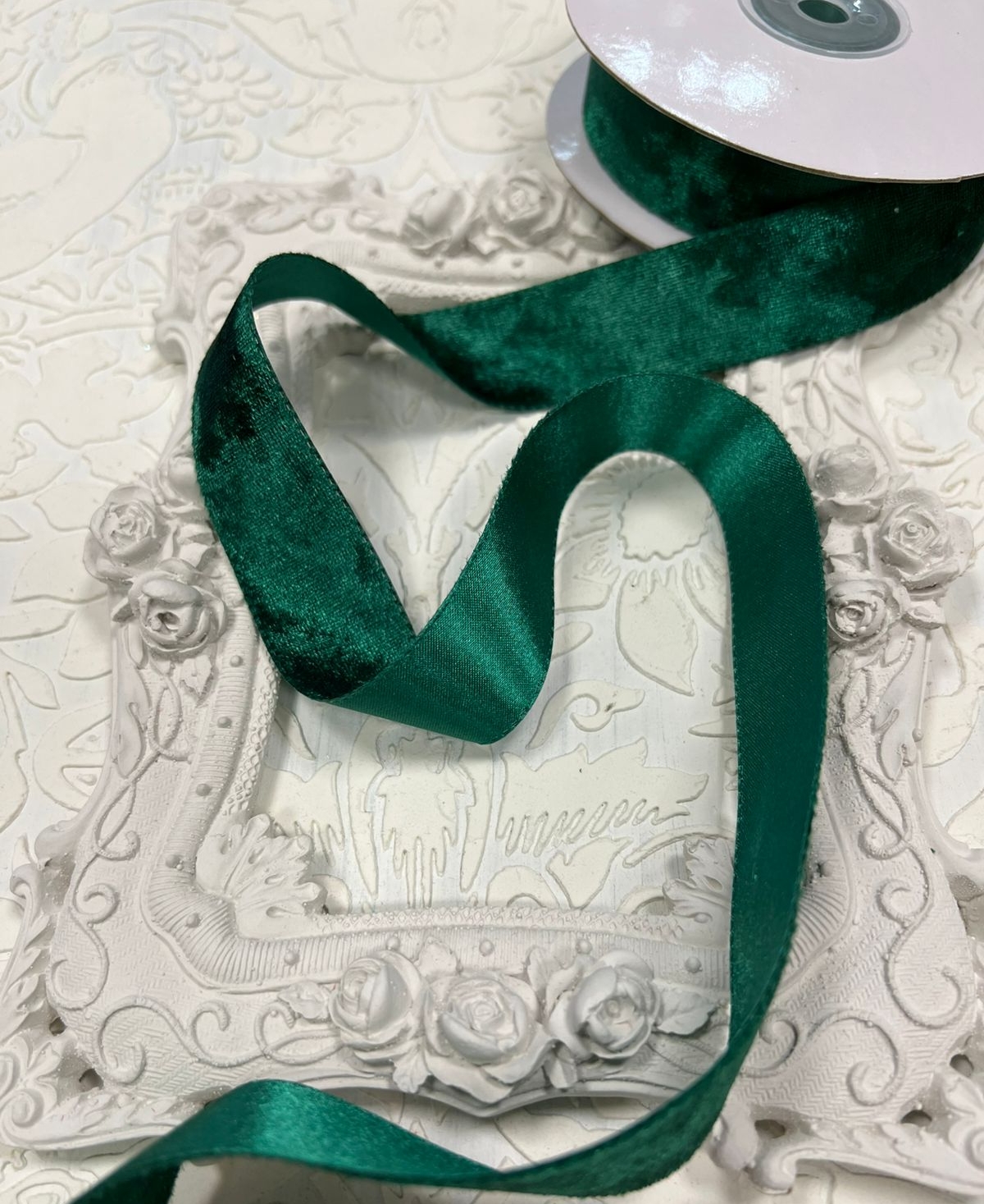 Лента двусторонняя велюр/атлас 2,5см цвет зеленый (1м)
