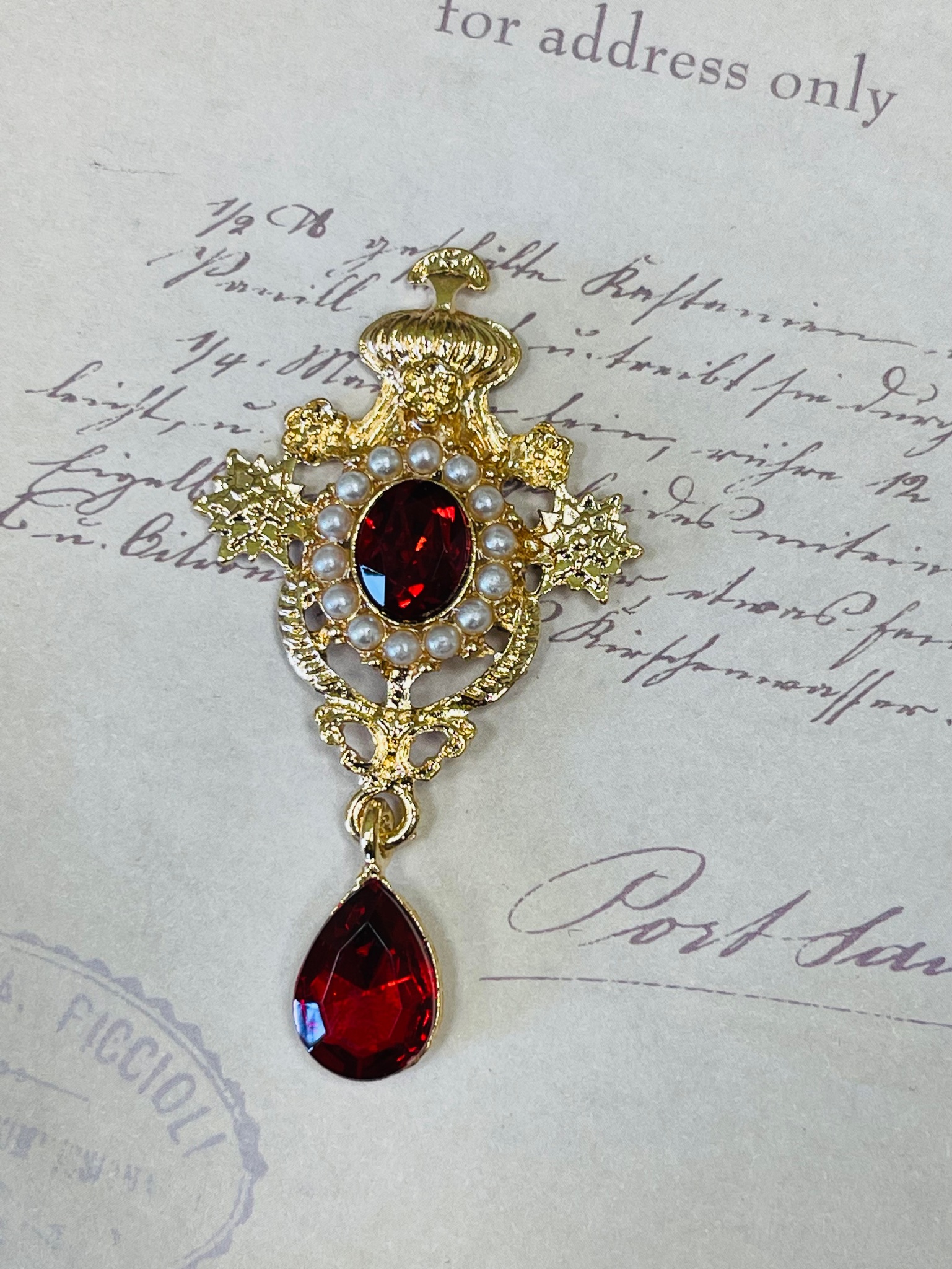 Металлическая жемчужная акриловая подвеска (62*32мм) цвет красный