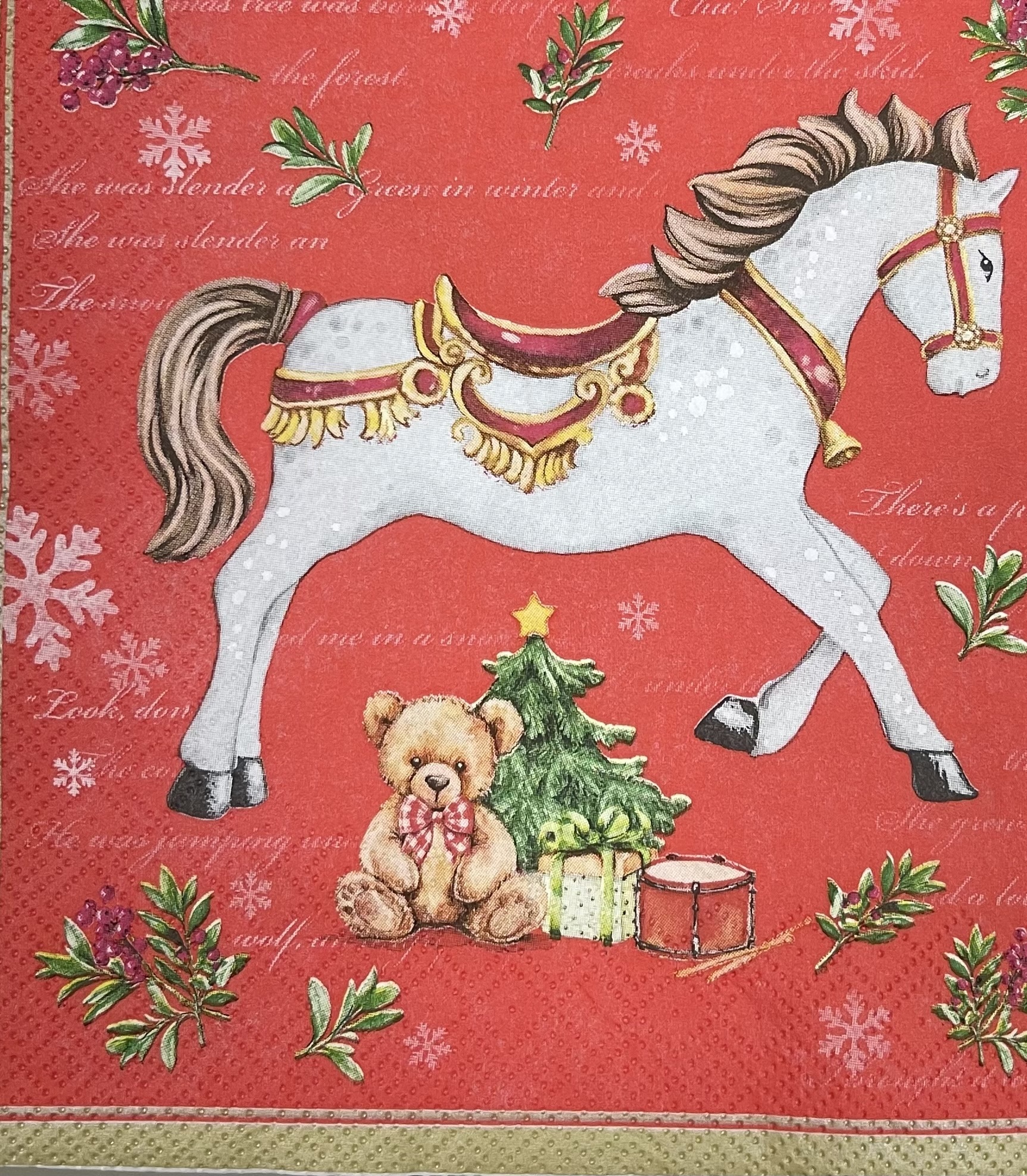салфетка bouquet "новогодняя лошадка красный фон" 33*33см (1шт)