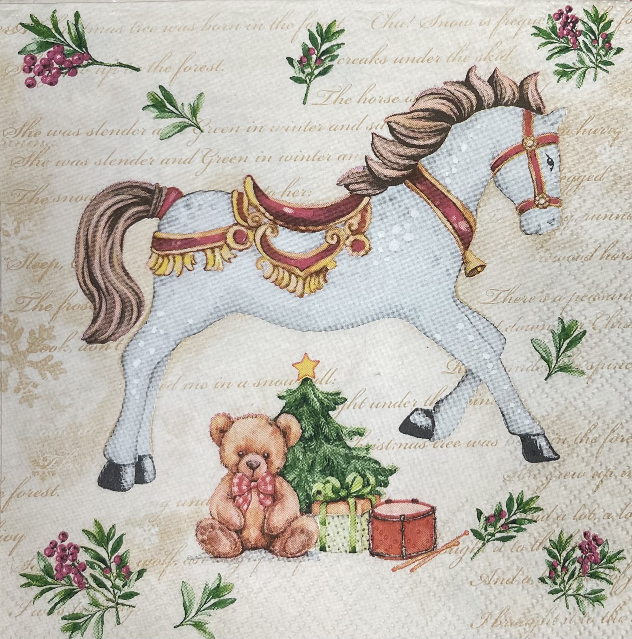 салфетка bouquet "новогодняя лошадка кремовый фон" 33*33см (1шт)