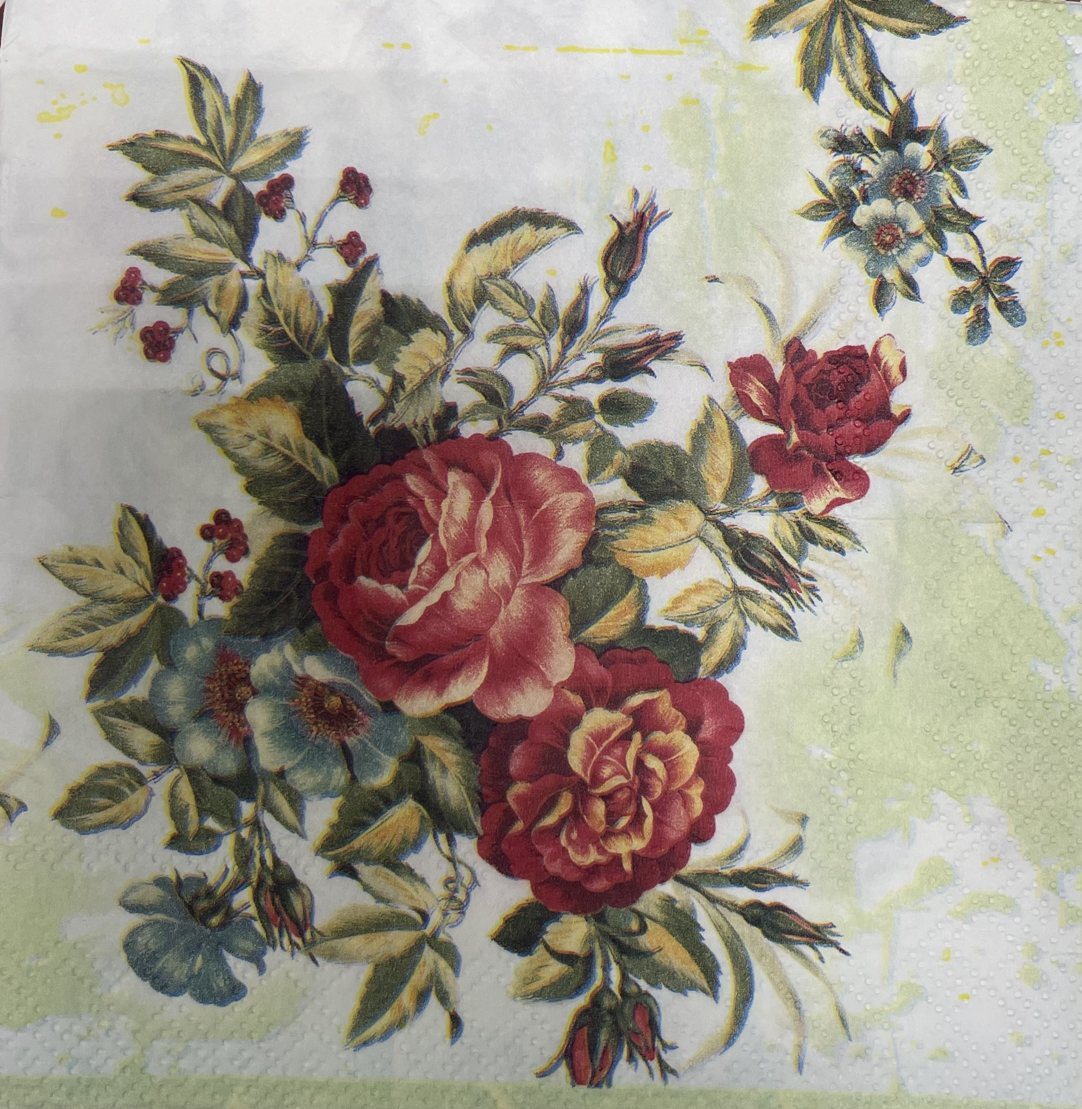 салфетка deluxe "цветы на салатном фоне" 33*33см (1шт)