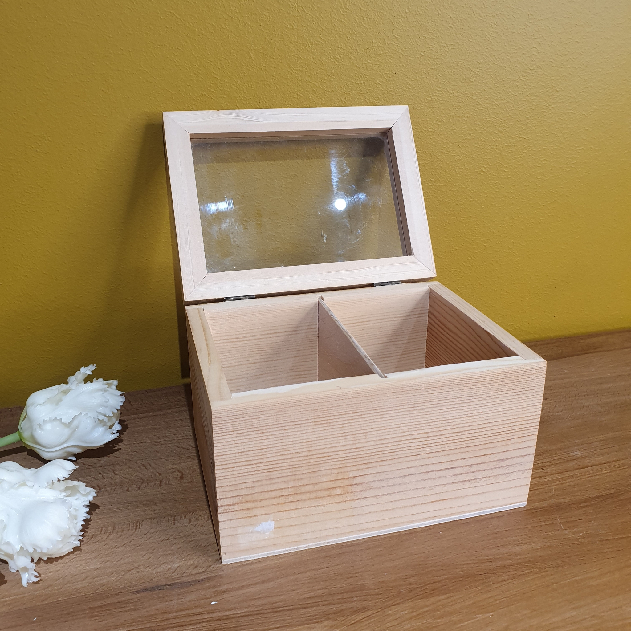 шкатулка со стеклом сосна 16,5*12*10см