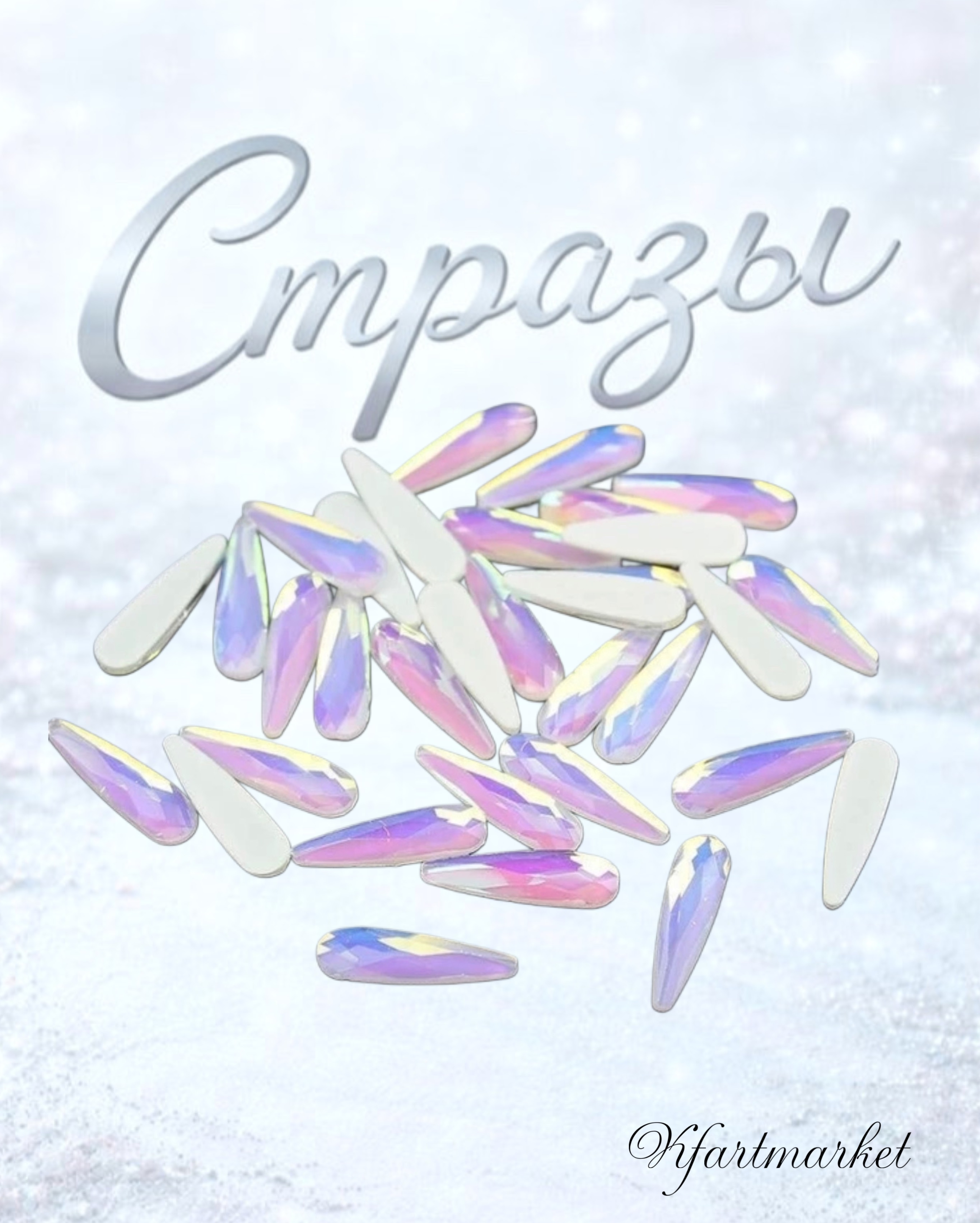 Стеклянные стразы 3*10 мм (20шт)цвет хамелеон бело-розовый