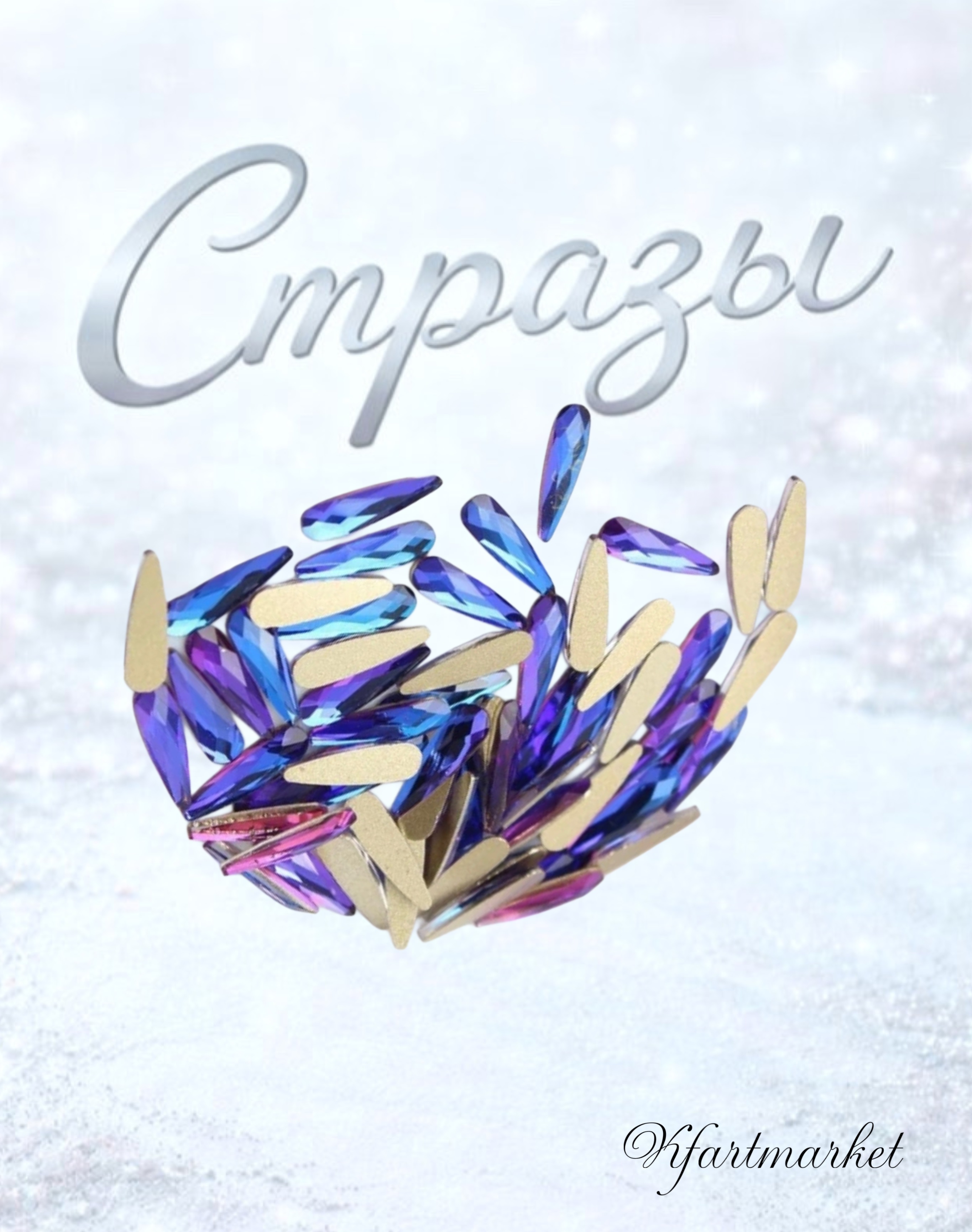 Стеклянные стразы 3*10 мм (20шт)цвет хамелеон фиолетово-синий