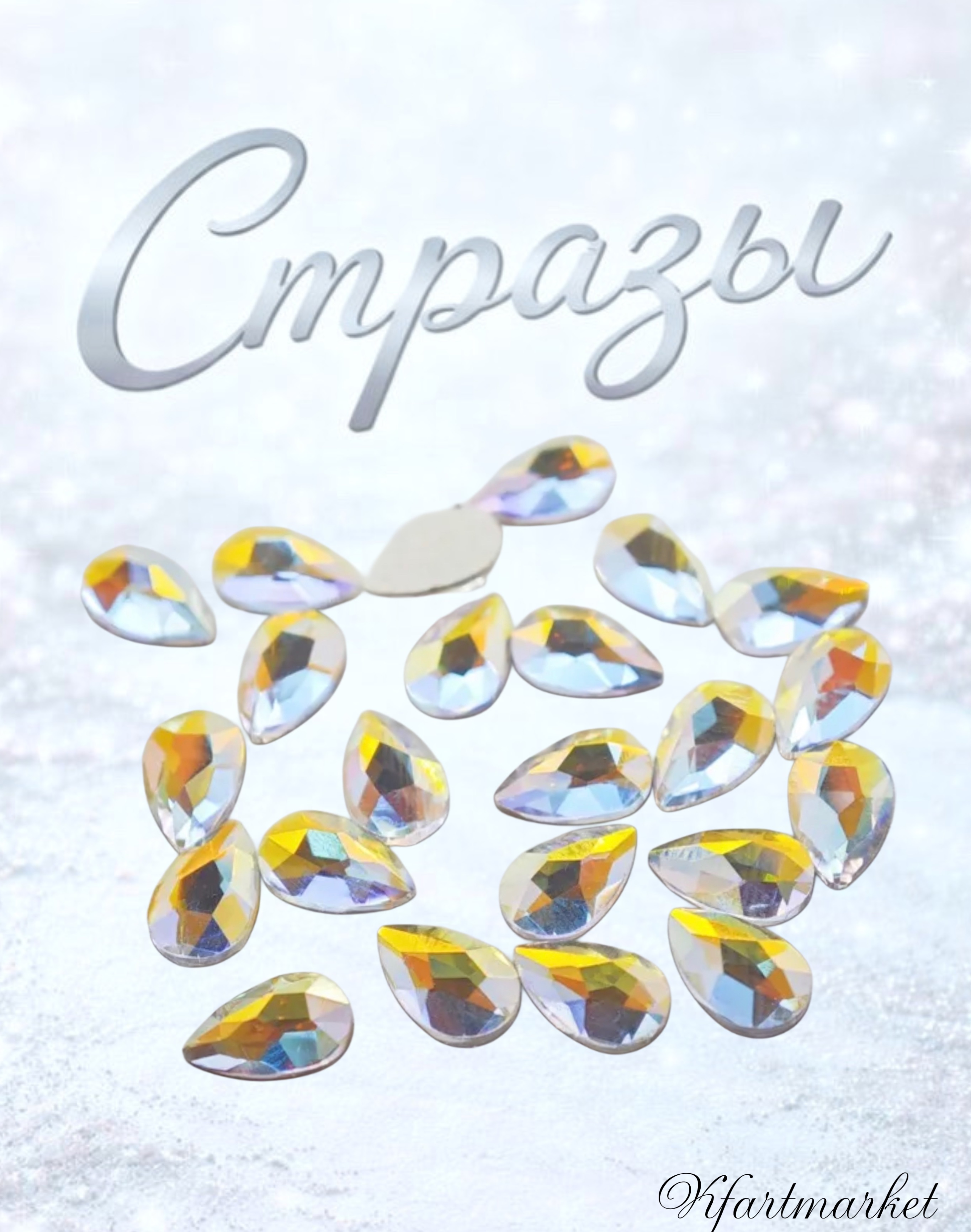 Стеклянные стразы (5,5*8мм) 25шт, цвет галография с желтым