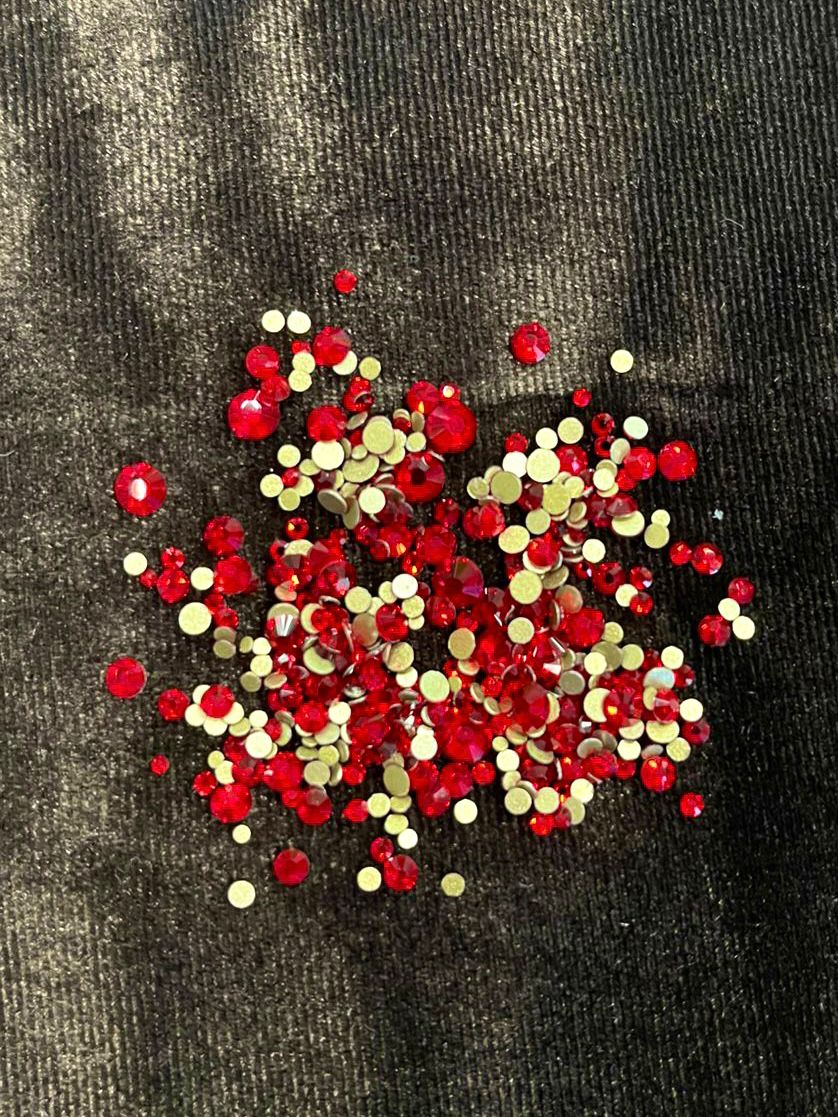 Стеклянные стразы (размер микс) 1140шт, цвет алый