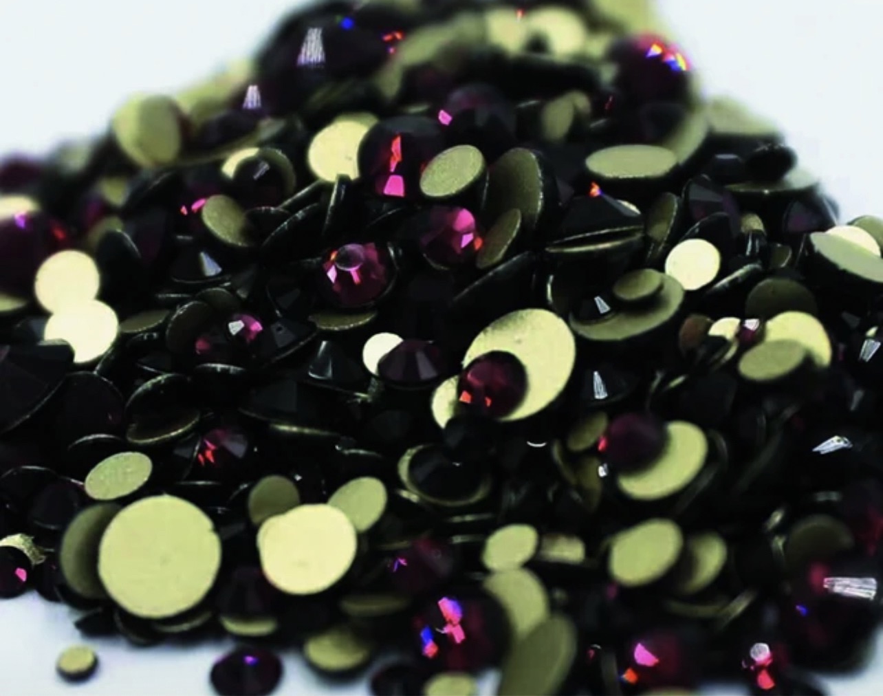 Стеклянные стразы (размер микс) 1140шт, цвет баклажан