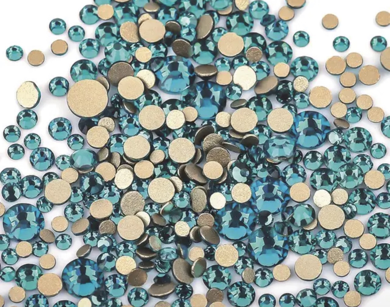 Стеклянные стразы (размер микс) 1140шт, цвет бирюза