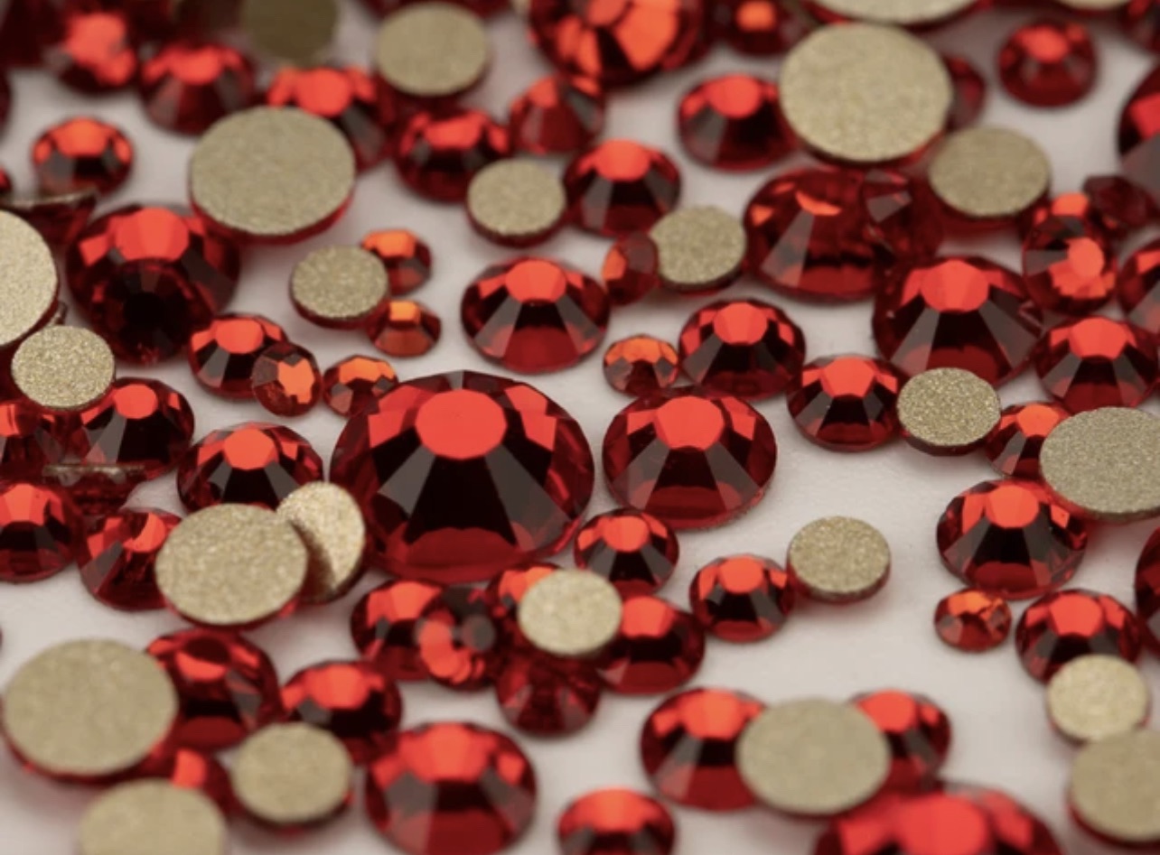 Стеклянные стразы (размер микс) 1140шт, цвет бордо