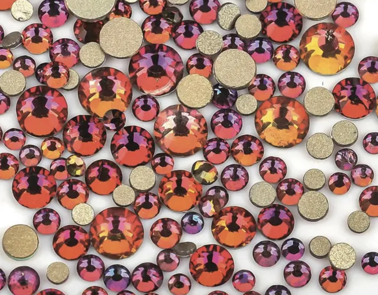 Стеклянные стразы (размер микс) 1140шт, цвет хамелеон розово-зеленый