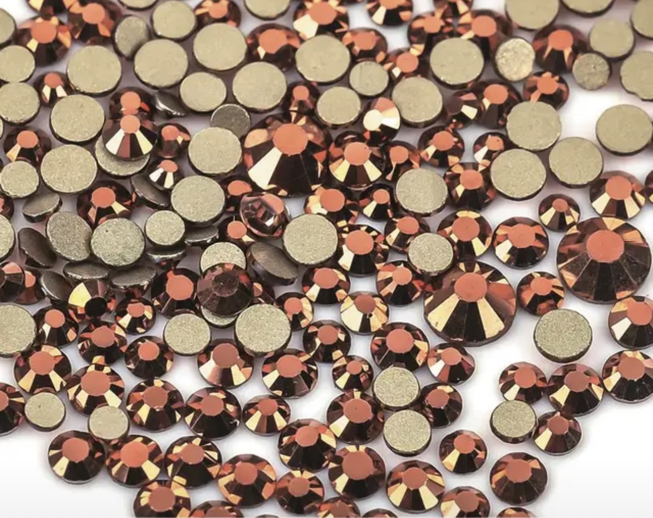 Стеклянные стразы (размер микс) 1140шт, цвет розовая бронза