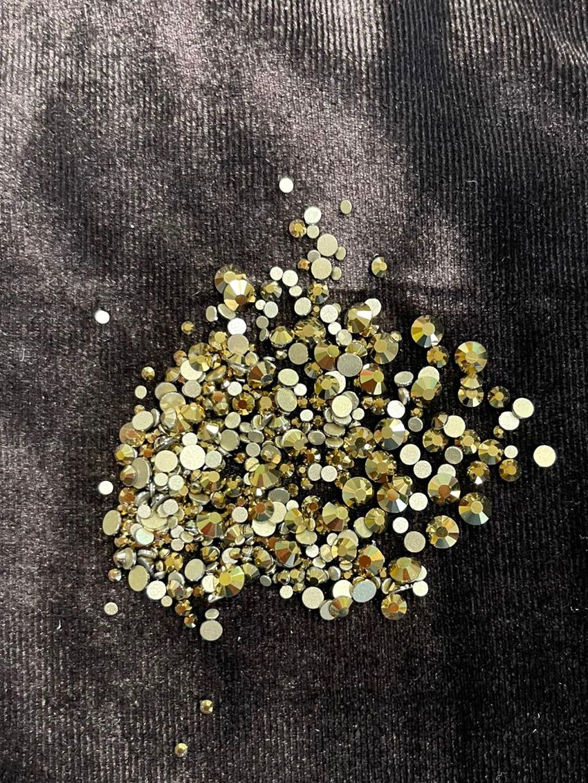Стеклянные стразы (размер микс) 1140шт, цвет светлая бронза