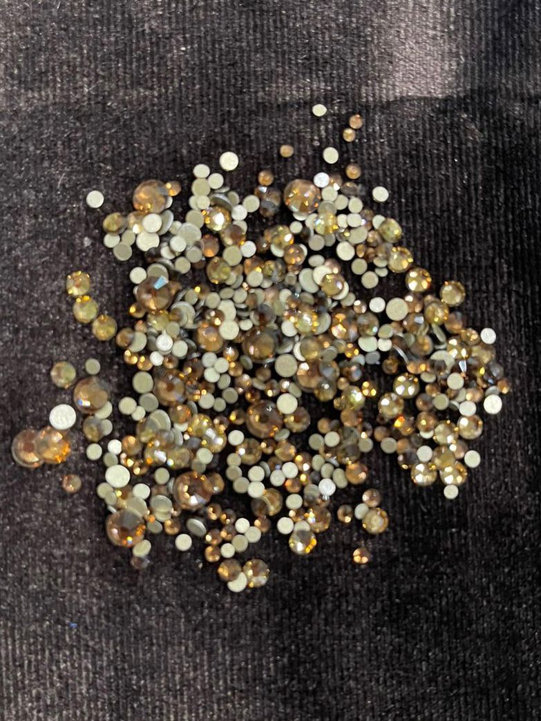 Стеклянные стразы (размер микс) 1140шт, цвет светлое золото