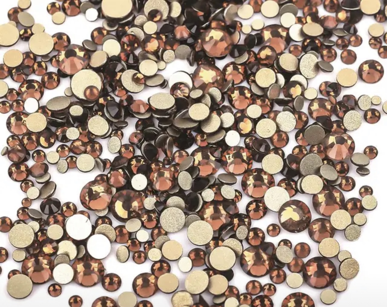 Стеклянные стразы (размер микс) 1140шт, цвет темная бронза