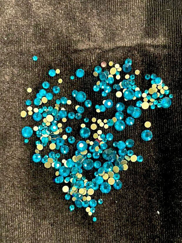 Стеклянные стразы (размер микс) 1140шт, цвет ярко-голубой