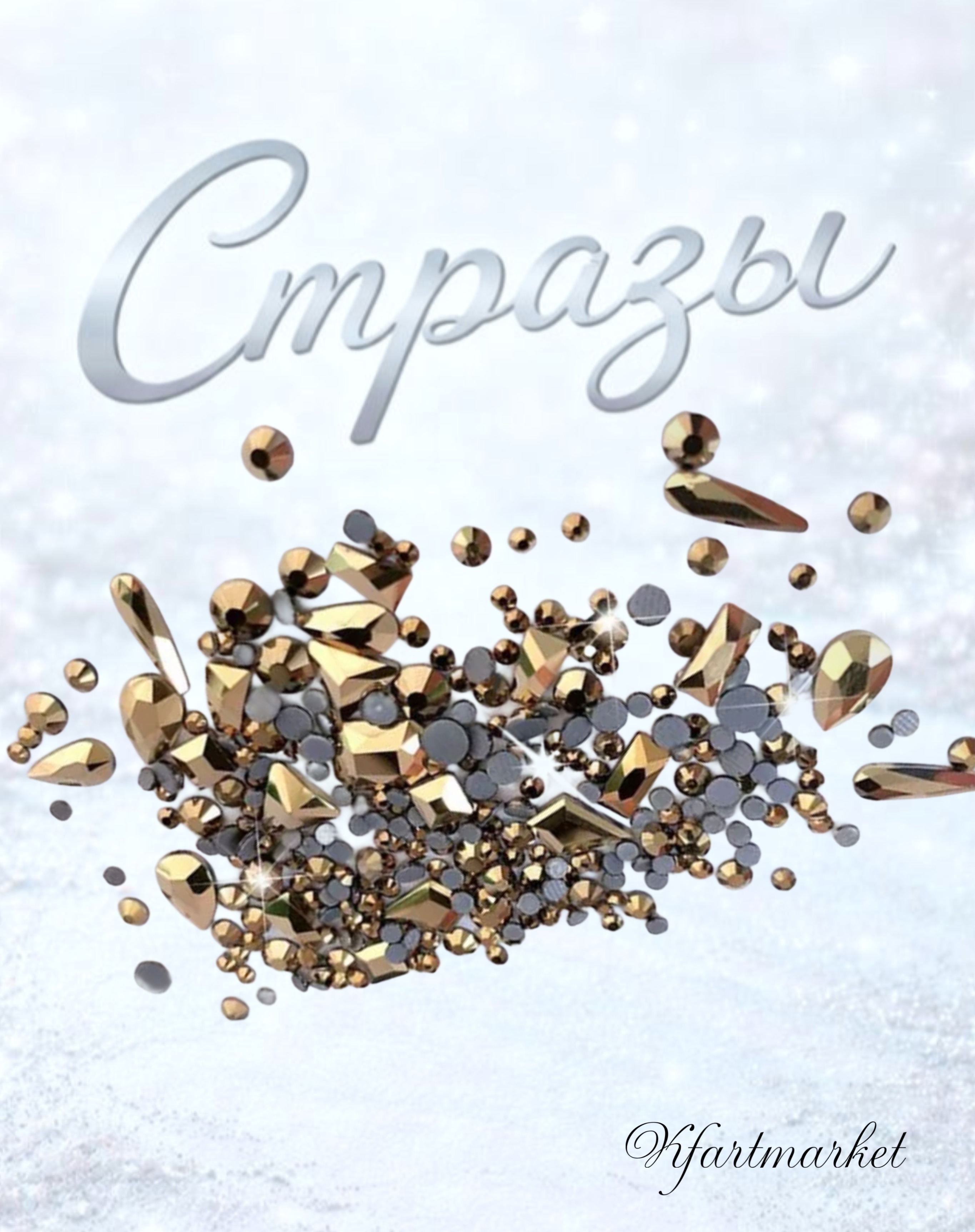 Стеклянные стразы (размер микс) 180шт, цвет золото