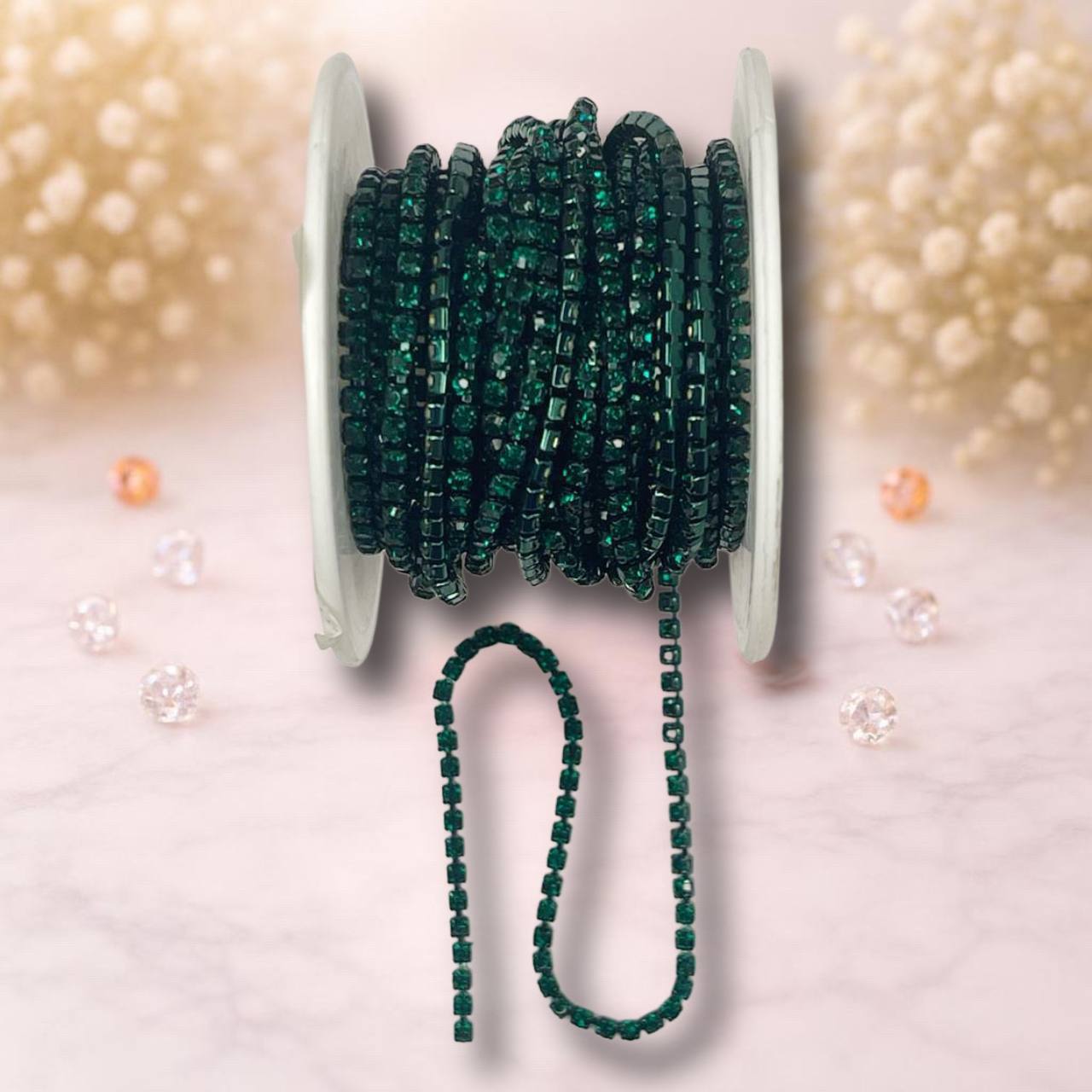 Стразовая лента 2,5мм цвет зеленый темный ( 1м)