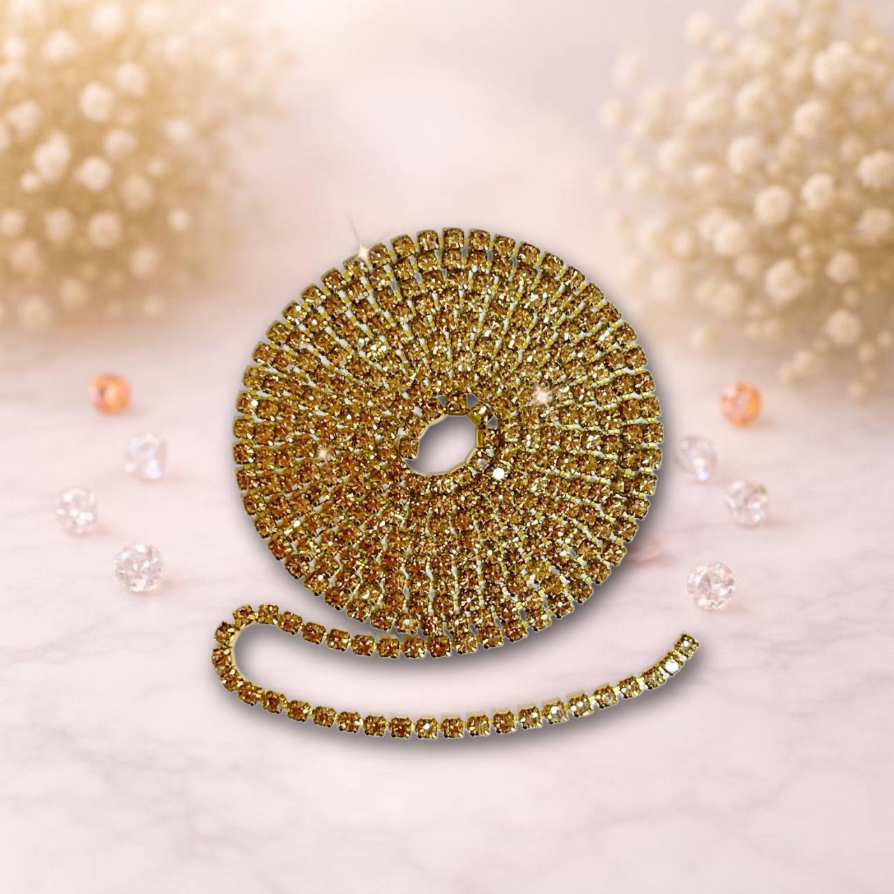 Стразовая лента 2,5мм цвет золото-коричневый (упаковка 1м)