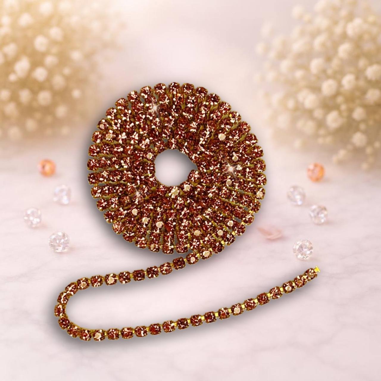 Стразовая лента 2,5мм цвет золото-розовый (упаковка 1м)