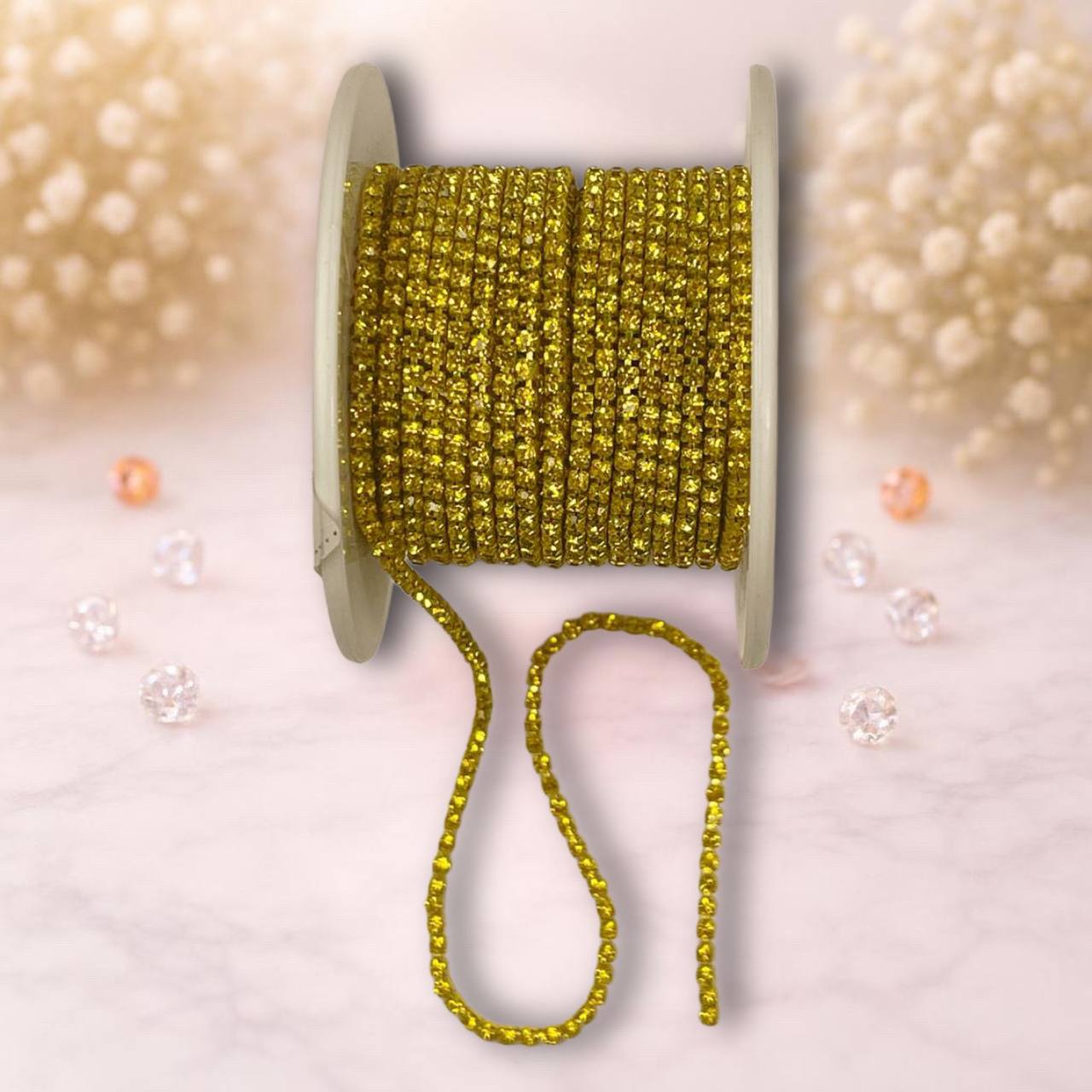 Стразовая лента 2мм цвет золото-желтый ( 1м)