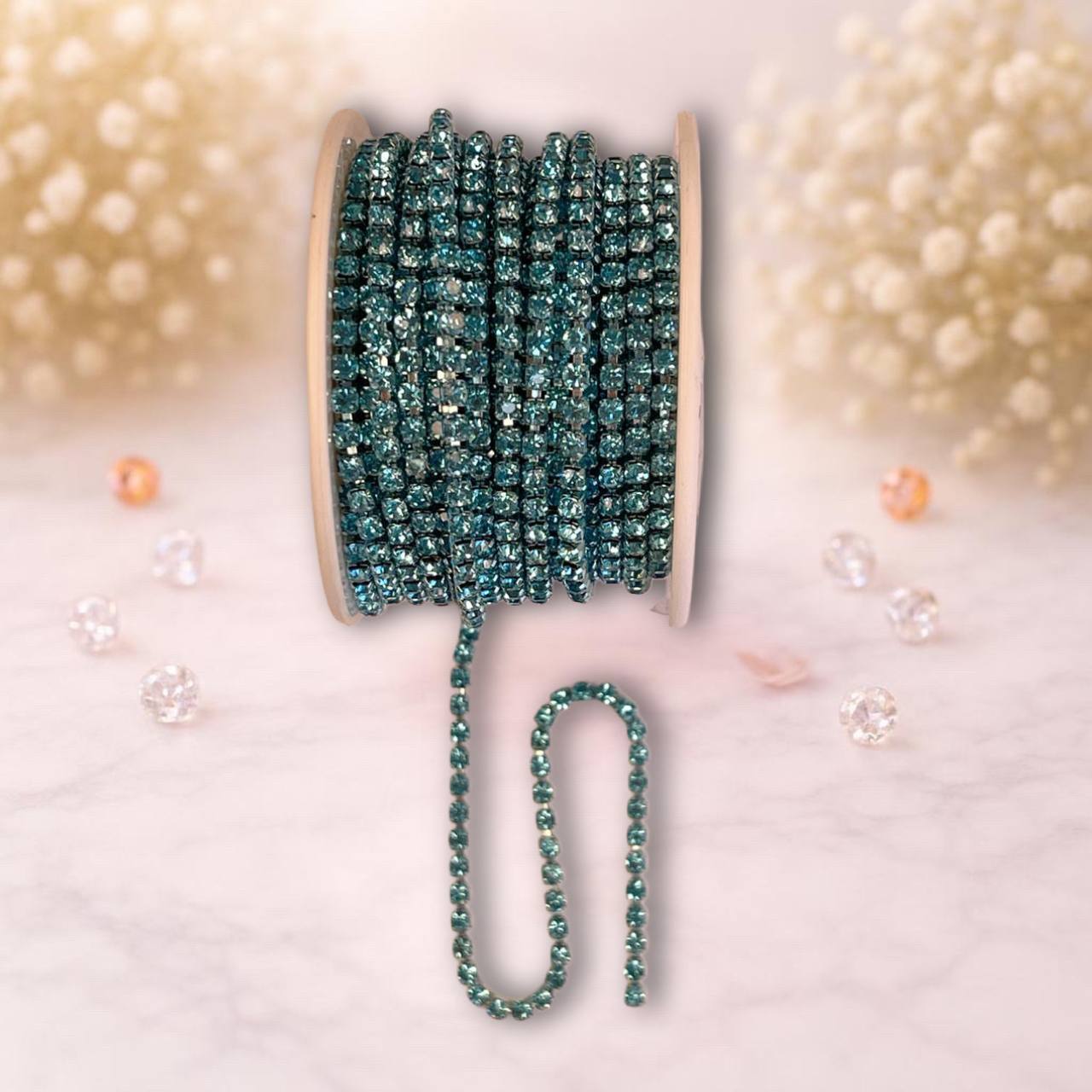 стразовая лента, 3мм, цвет голубой. (1м)