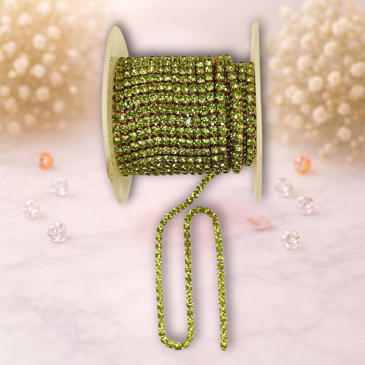 стразовая лента, 3мм, цвет салатная с золотом. (1м)