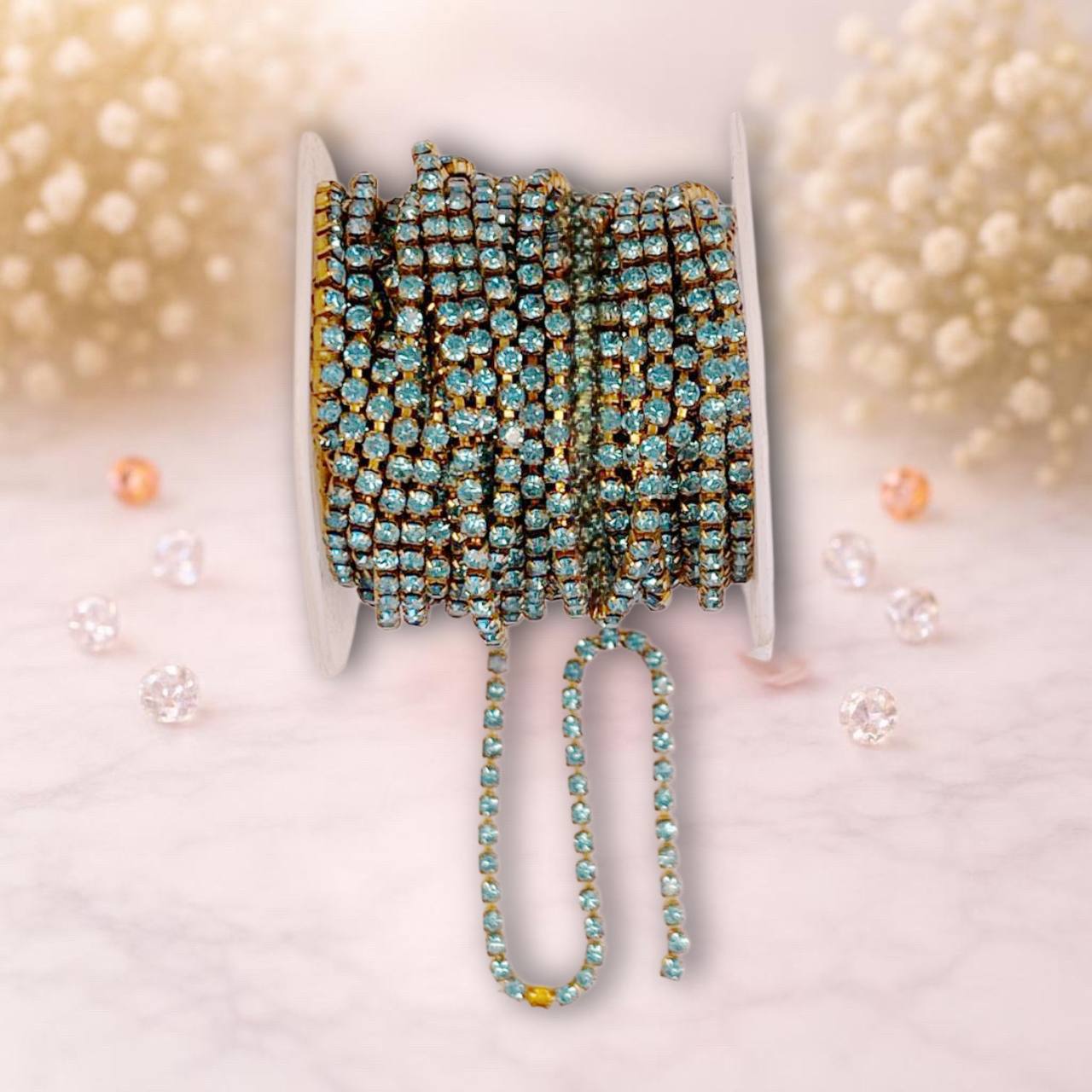 стразовая лента 3мм цвет золото-голубой