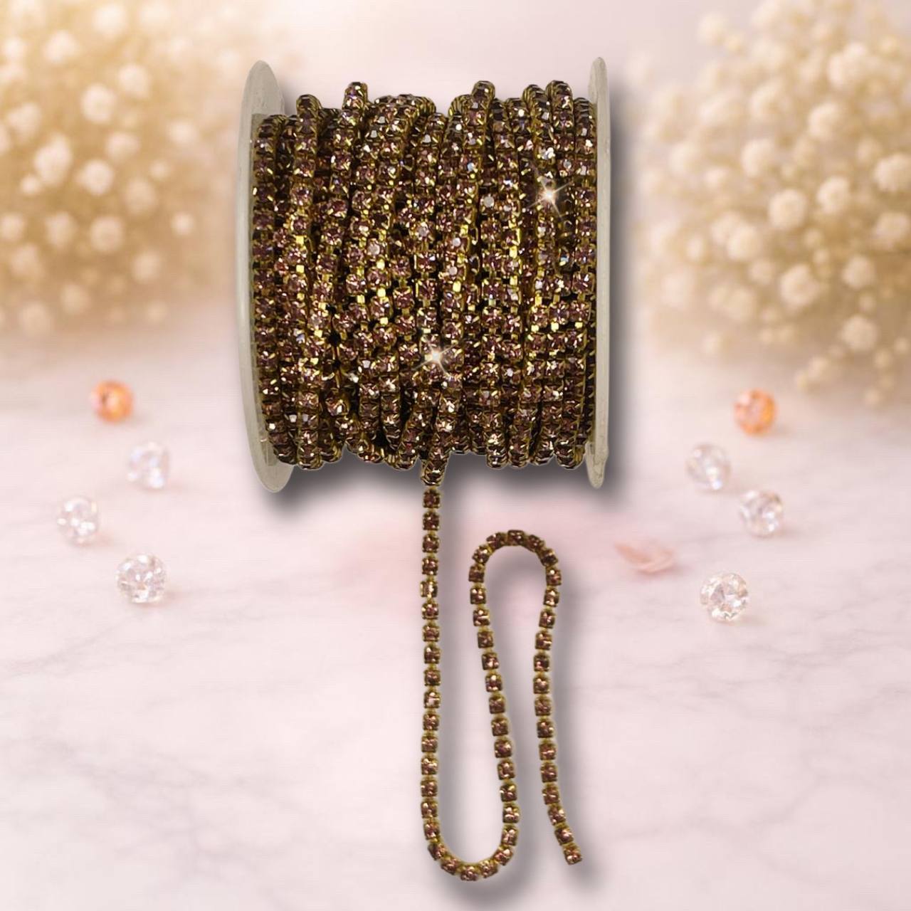 стразовая лента 3мм цвет золото-розовый