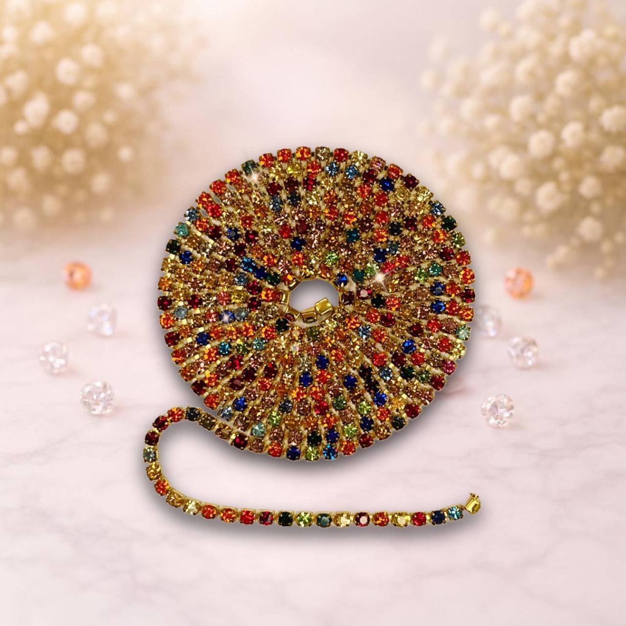 Стразовая лента многоцвет-золото 0.3 (1м)