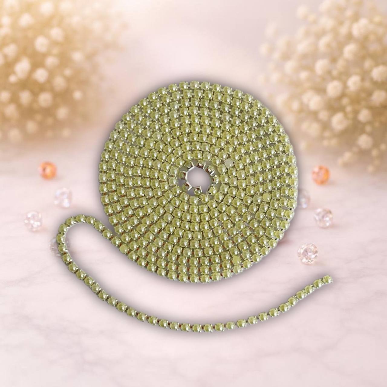 стразовая лента с молочной жемчуженой на серебро метале,1метр