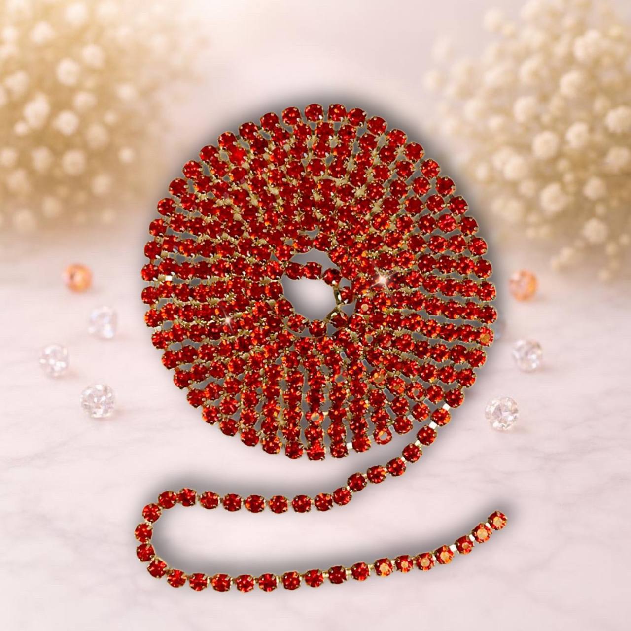 стразовая лента, цвет красный- метал серебро, 1метр