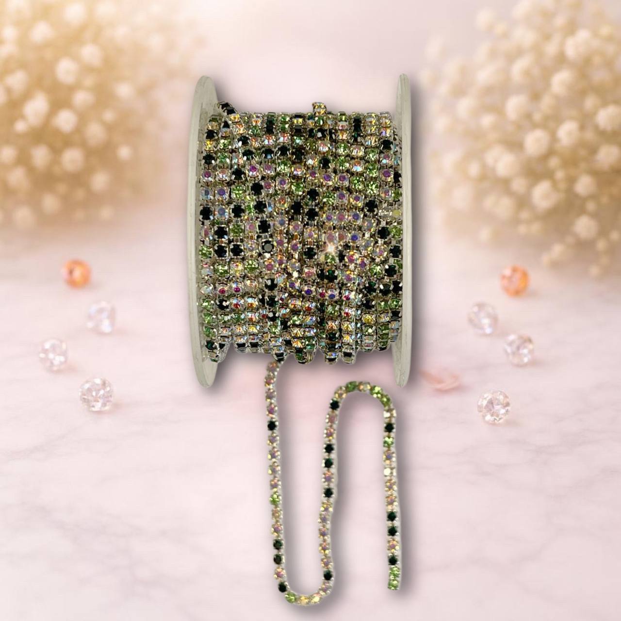 стразовая цепочка 2,8мм цвет разноцвет (черный,зеленый,галограмм) (1м)