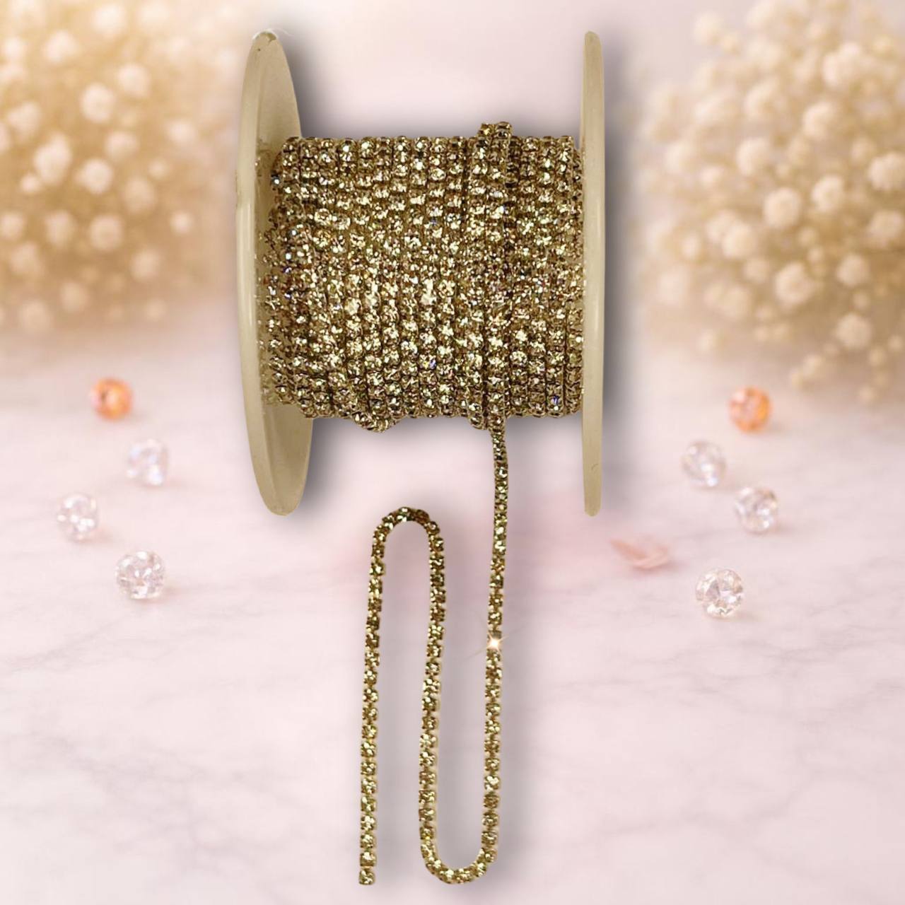 Цепь со стразами в бобине (2 мм) , серебро в серебряной оправе