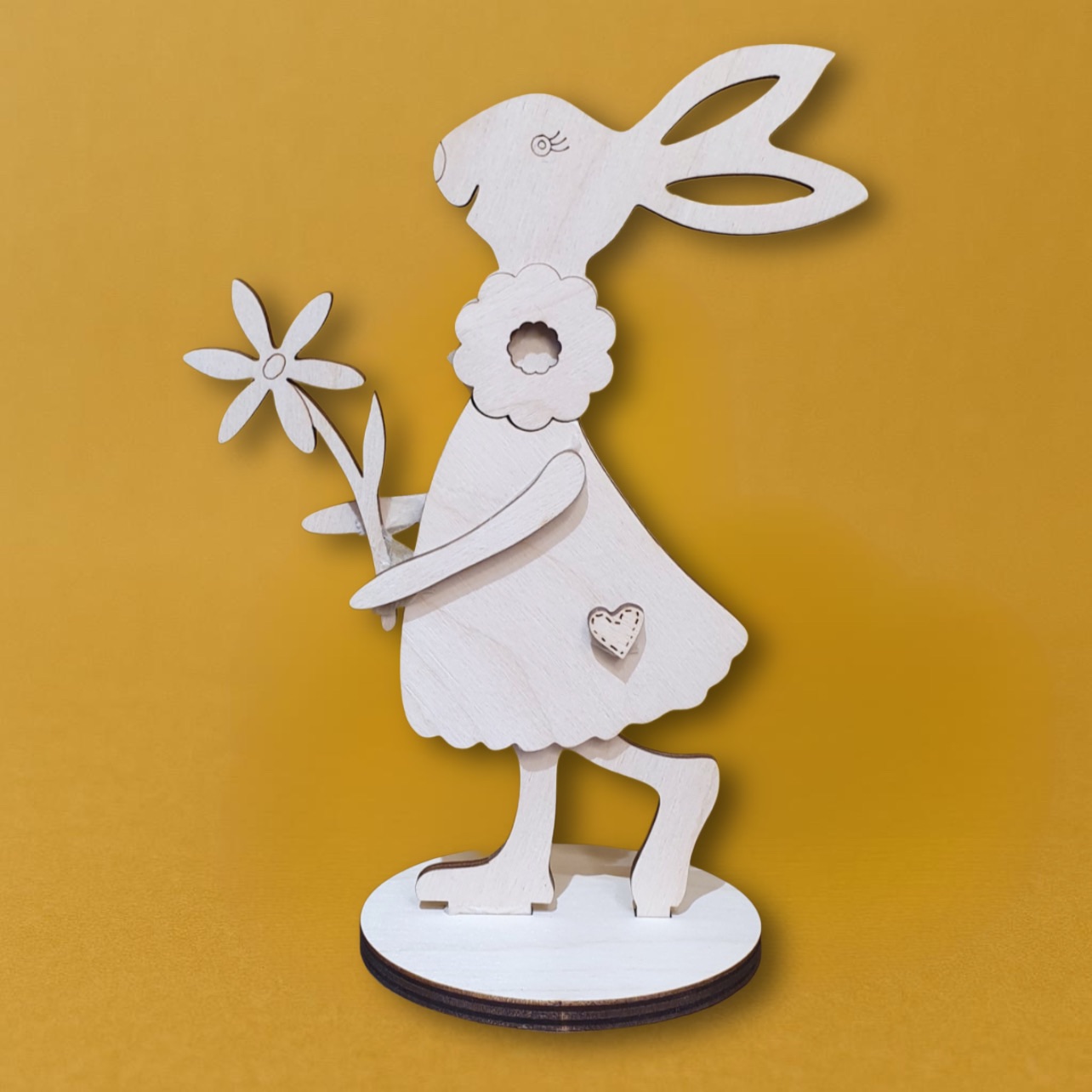 Зайчик с цветком 19см (фанера)